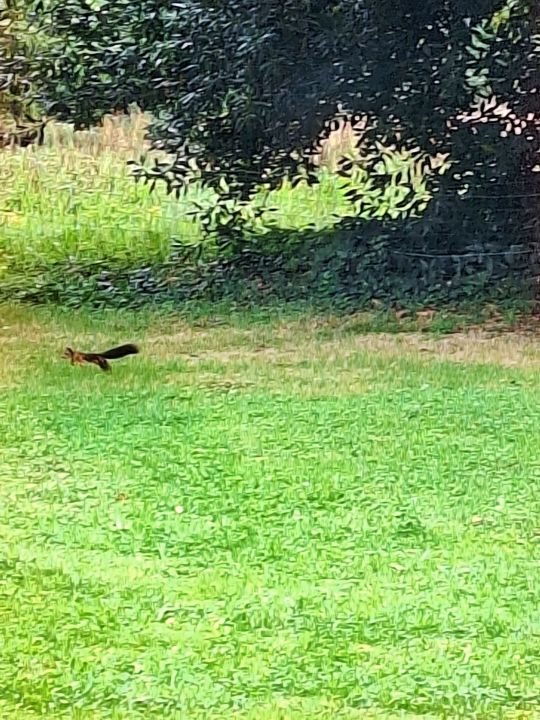Ce matin, pendant que nous dansions dans la salle de motricité, un écureuil a parcouru le jardin...il courrait dans l herbe puis montait au sapin et redescendait....nous nous sommes mis aux fenêtres pour l'observer : quelle chance de pouvoir le voir en liberté !